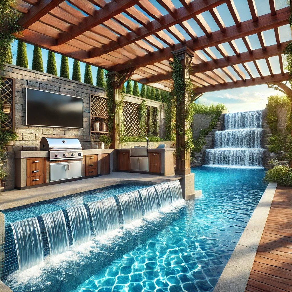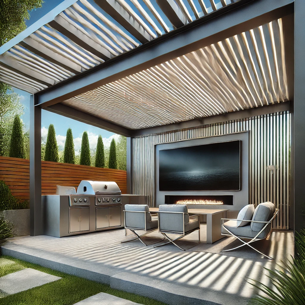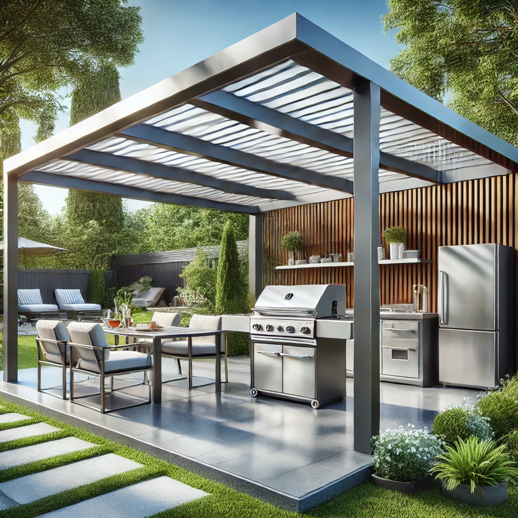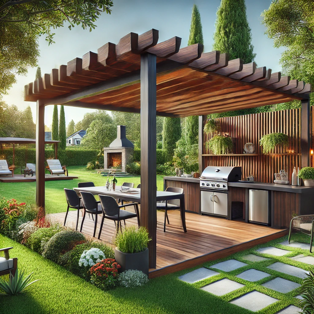 pergola with integrated BBQ kitchen . Designed to offer protection, style and comfort , this structure combines high-quality materials with a modern and functional design. Enjoy preparing your meals outdoors without worrying about the weather, in a space designed to suit you.